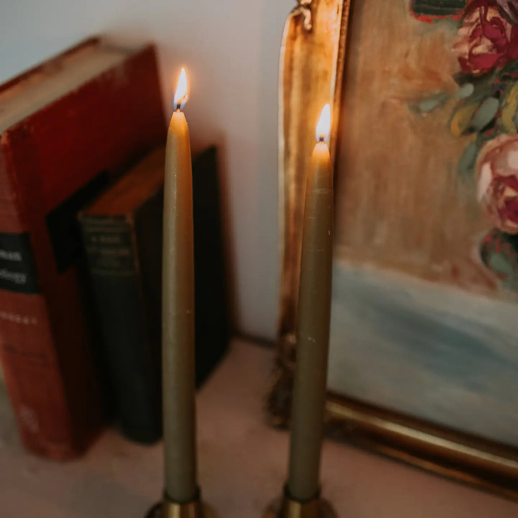 Wild Hive Moss Green Hand Dipped Taper Candles